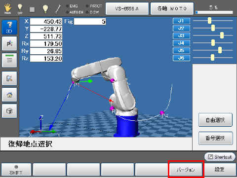 復帰地点選択画面でF5 [バージョン] を押すと、RC8機能拡張IPCキットの原点復帰経路計算ソフトのバージョンを確認することができます。