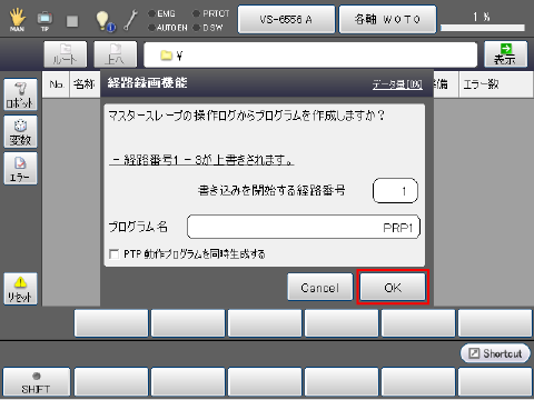 "書き込みを開始する経路番号"と"プログラム名"を設定し、[OK]を押します。
