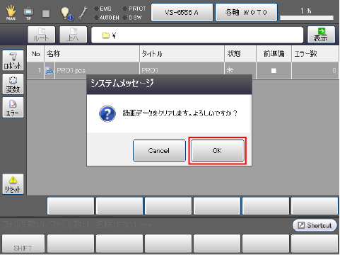 確認メッセージが表示されます。[OK]ボタンを押します。