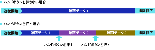 録画している途中でハンドボタンを押した際は、録画データが分割されます。