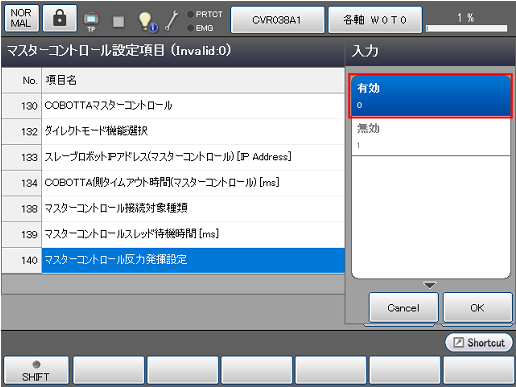 操作経路: [F6 設定] - [F10 COBOTTA] - [F8 マスター設定]