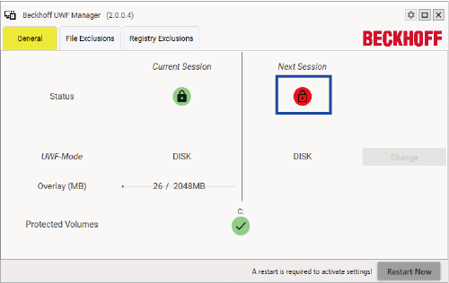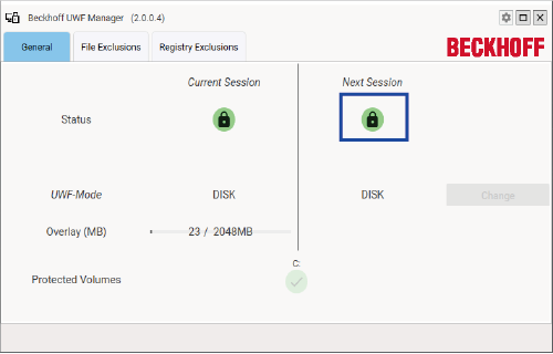再起動後、再度"Beckhoff UWF Manager"を立ち上げ、画像と同じマークになっていることを確認します。同じマークになっていれば設定は完了です。