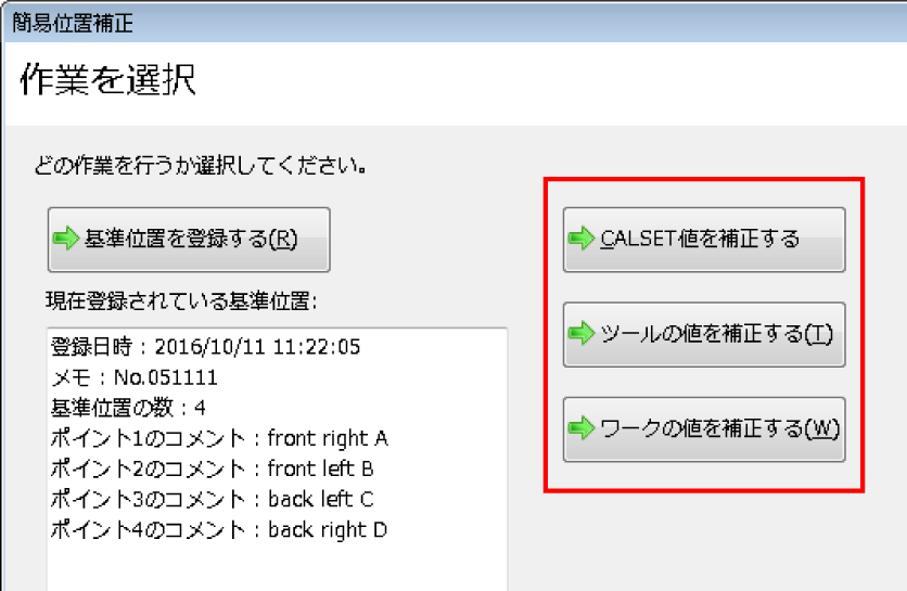 基準位置が登録されていないと補正方法を選択することはできません。