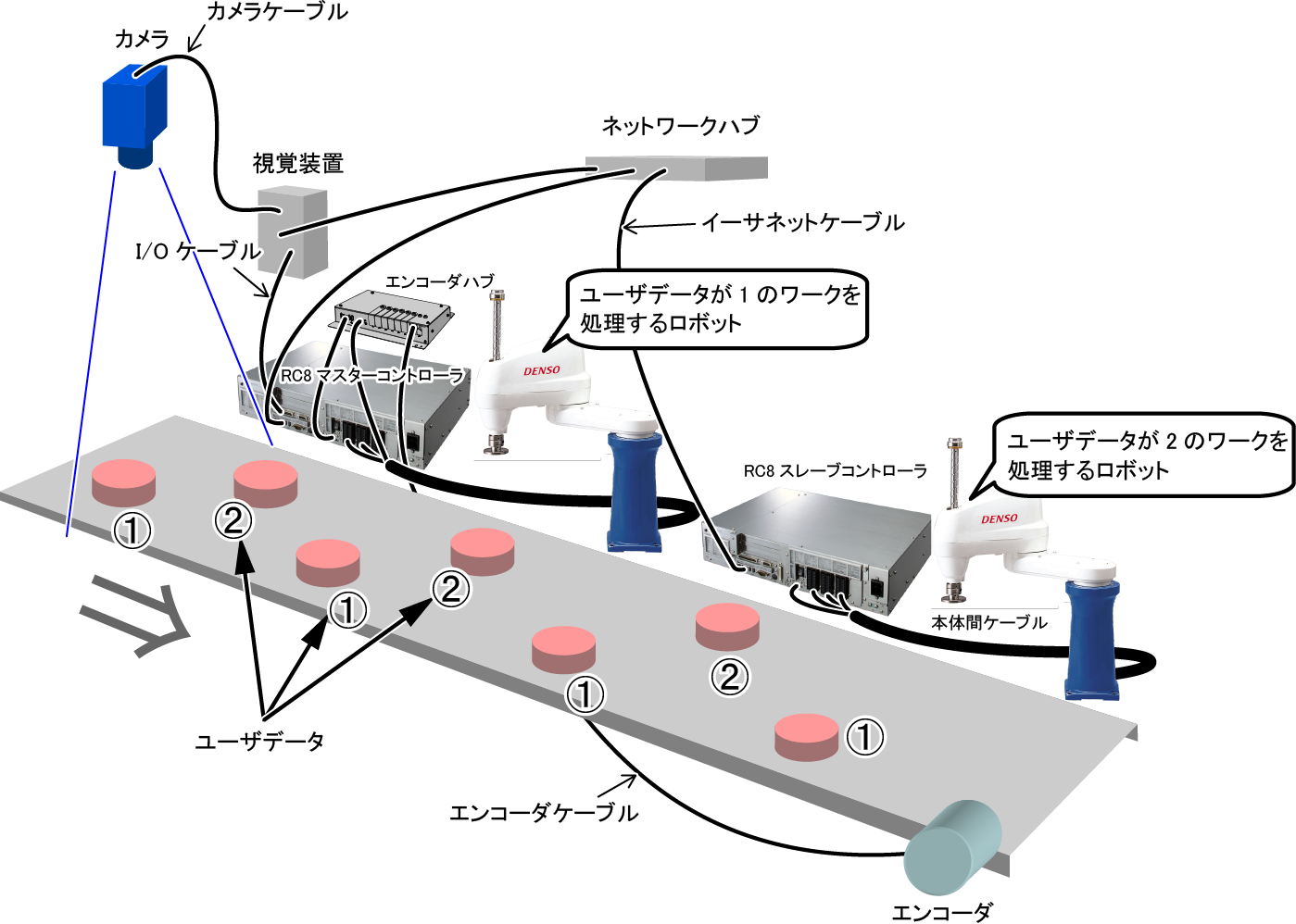 2台のロボットで交互にトラッキングするために、トラッキングバッファに保存するデータのユーザデータを1と2の交互に保存する方法