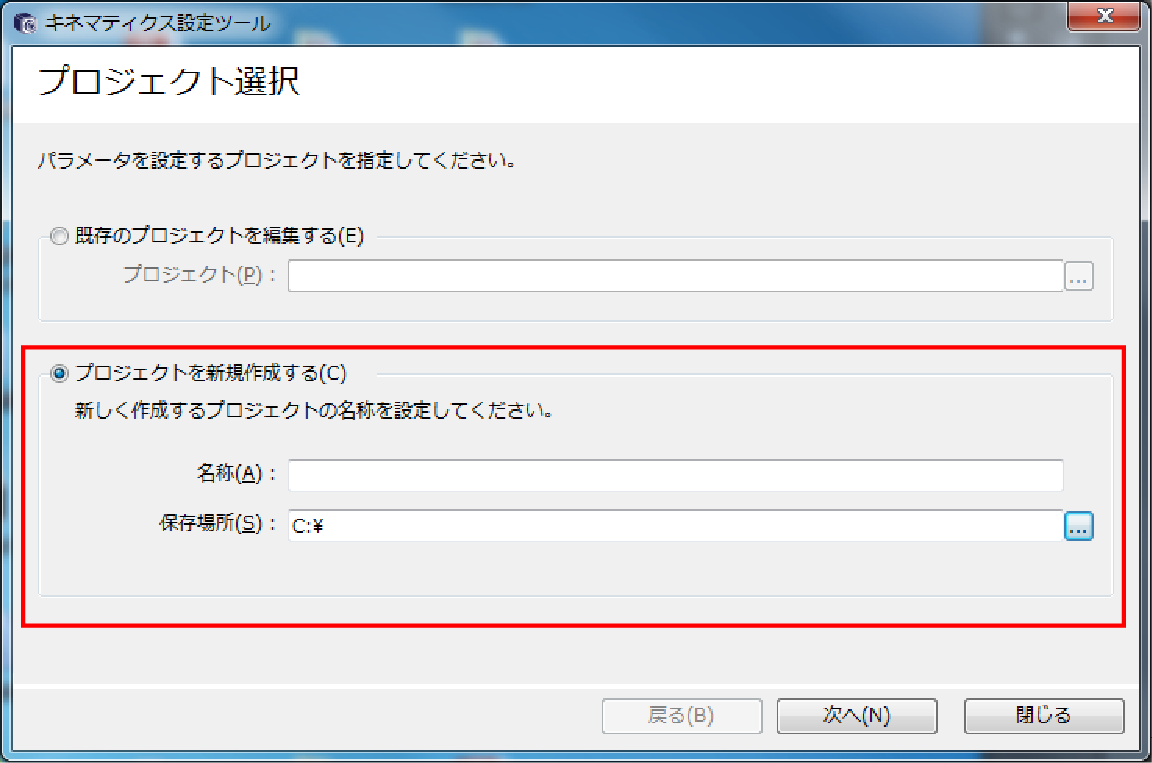 プロジェクトの選択で[既存のプロジェクトを編集する]を選んだ場合、この画面は表示されません。