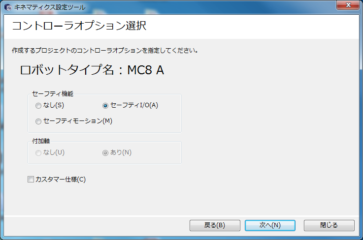 「各軸の設定」の後で、キネマティクス設定ツールを使用する場合は、コントローラのプロジェクトをWINCAPSIIIに取込んで保存した後、このツールで[既存のプロジェクトを編集する]を選択してください。