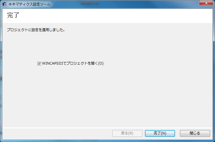 「WINCAPSIIIでプロジェクトを開く」にチェックをすると、[完了]を押したあとにWINCAPSIIIが立上がります。