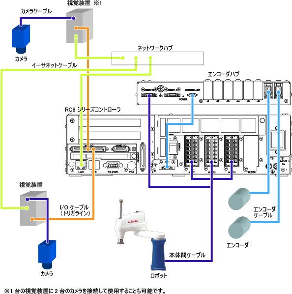 新規品を使用する場合、本体間ケーブルのエンコーダ線は、エンコーダハブの"ROBOT-0"と印字されている方 (正面から見て左側) のコネクタに接続してください。