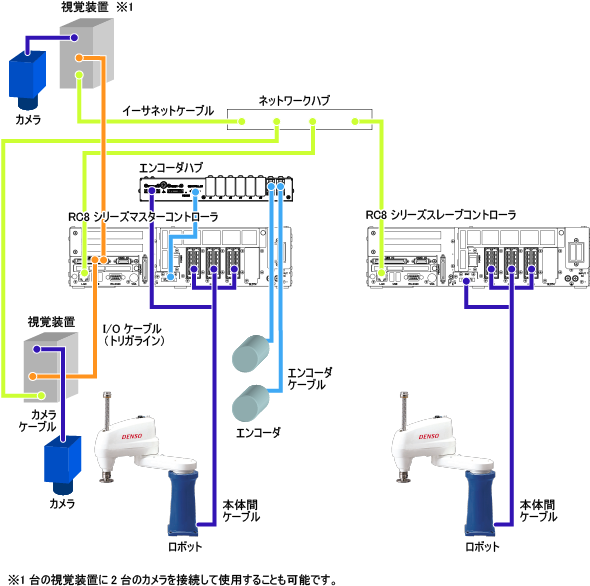 - マスタコントローラとスレーブコントローラは同じ仕様(付加軸あり、円形トラッキングのライセンスあり、同一ソフトバージョン)であることが必要です。