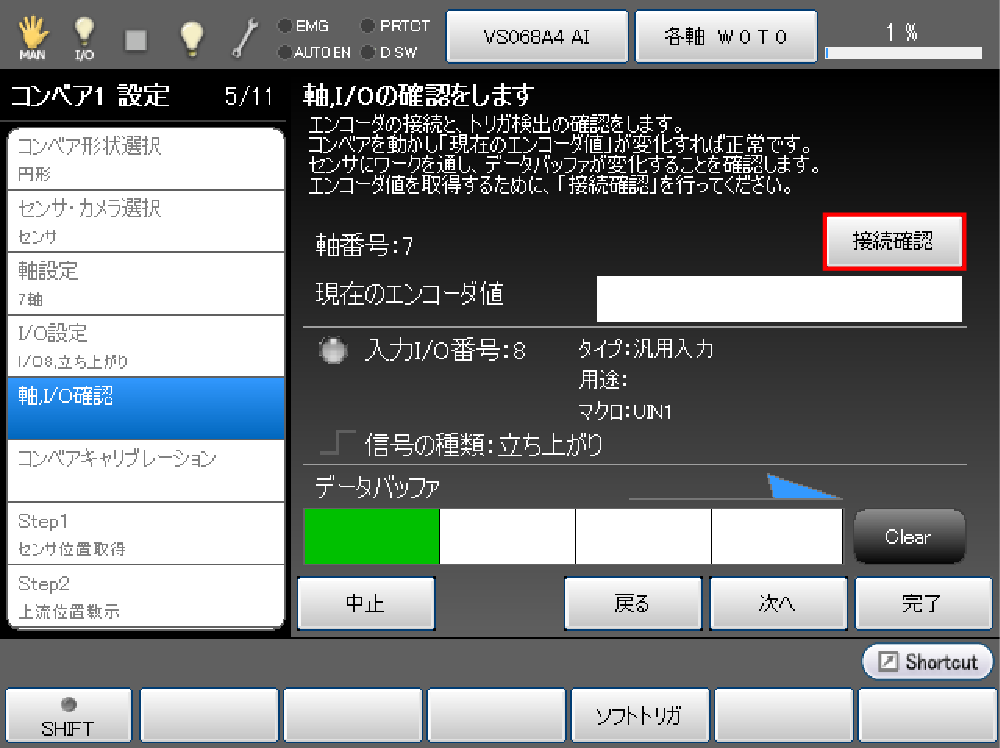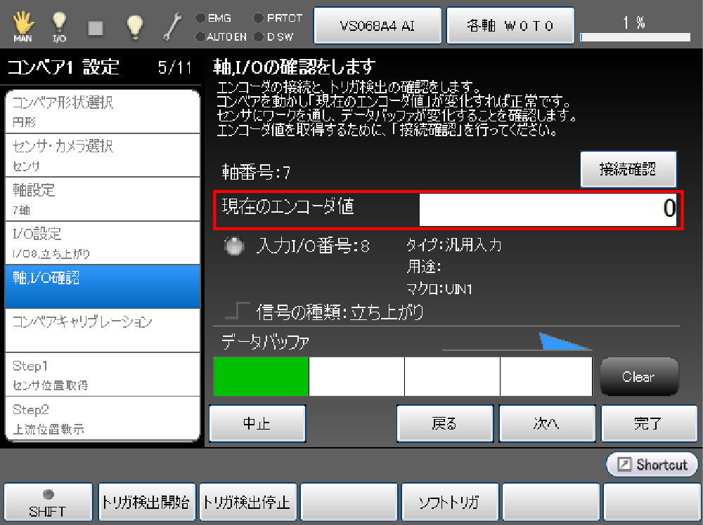 ターンテーブルを作動し、[現在のエンコーダ値]が変化することを確認します。