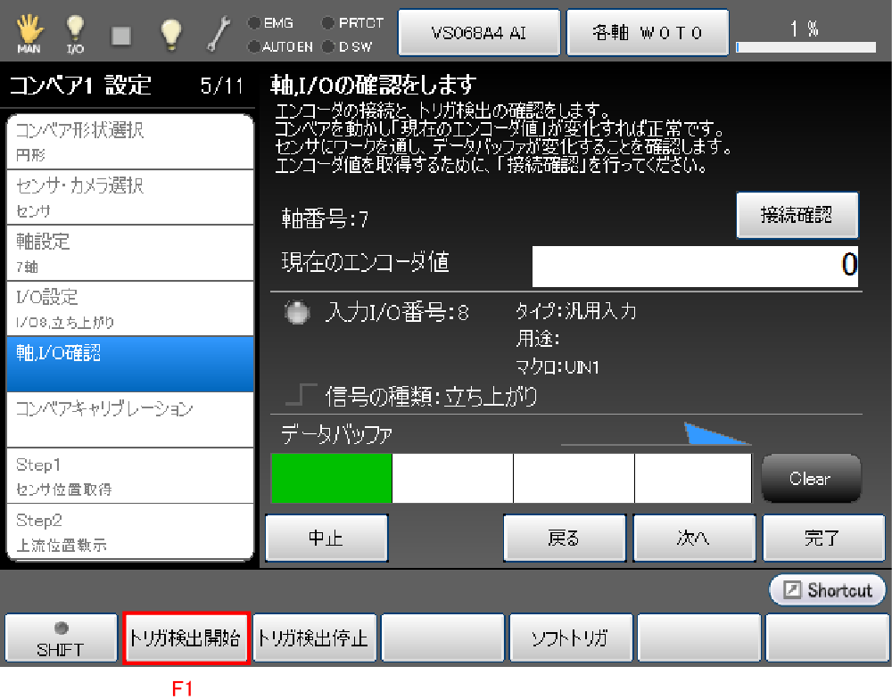 [データバッファ]が変化しない場合は、[F1 トリガ検出開始]を押します。