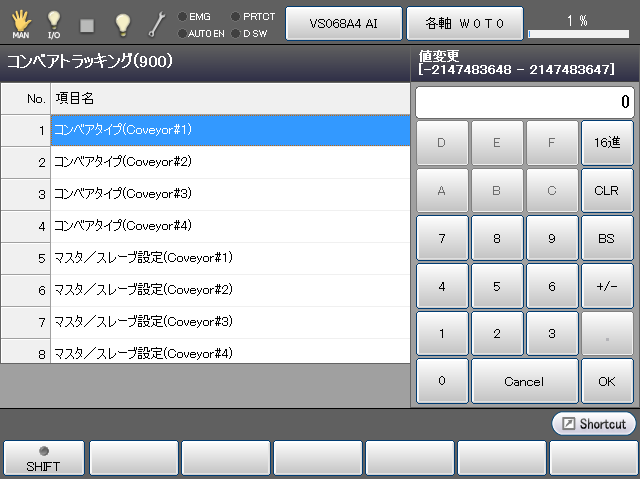 テンキーを使ってパラメータ値を入力し、「OK」を押します。