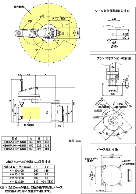 外形寸法と動作範囲