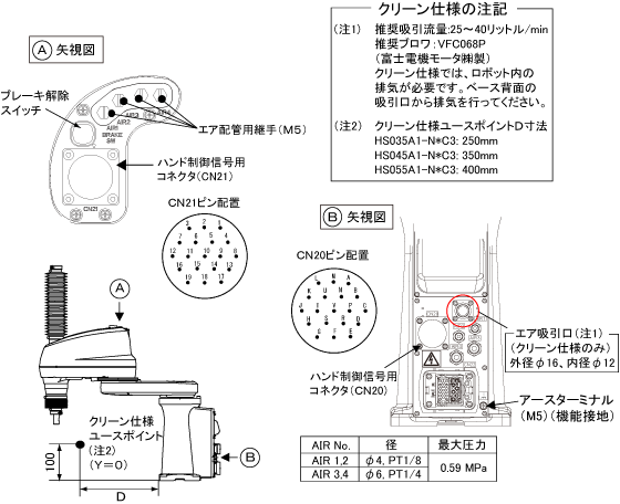 *1 : 2019年5月頃よりコネクタを変更しています。コネクタは互換性があるため、どちらのコネクタでもロボットとの接続が可能です。ただし、適合配線径が旧品のものと異なります。変更後のコネクタを使用する場合は上記表記載の適合配線径に適したケーブルを使用してください。