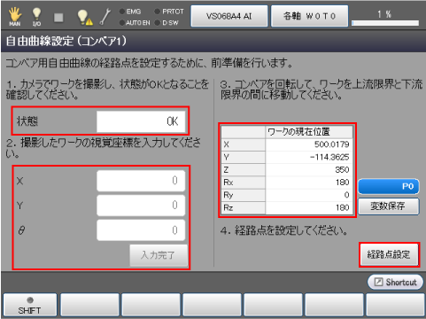 - 「経路点設定」画面では、コンベアを動かさないでください。