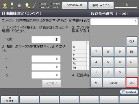 [経路点設定]ボタンを押すと、経路番号を設定する数値入力画面が表示されますので、経路点を登録したい経路番号を指定して[OK]を押します。