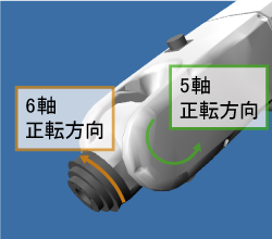 6軸タイプAロボットの場合、5軸を動作させた際に、その動作量に伴って6軸が動く機構を利用することができます。その場合、以下の二つのパラメータを設定する必要があります。