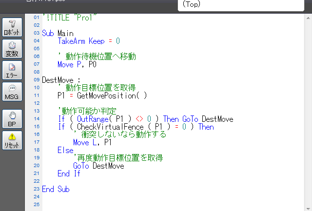 ロボットを動作させて、ロボットが設備と衝突することをバーチャルフェンス機能が検出すると、エラーが発生しロボットは停止します。しかし、CheckVirtualFenceコマンドでは、ロボットを動作させずに、目標位置でロボットが設備と衝突するかをチェックできるので、エラーでロボットが停止することなく動き続けるようにプログラミングすることができます。