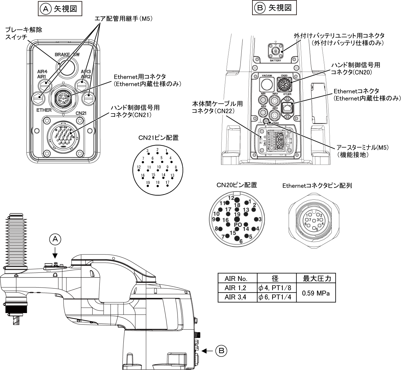 下図はEthernet内蔵仕様、外付けバッテリ仕様です。