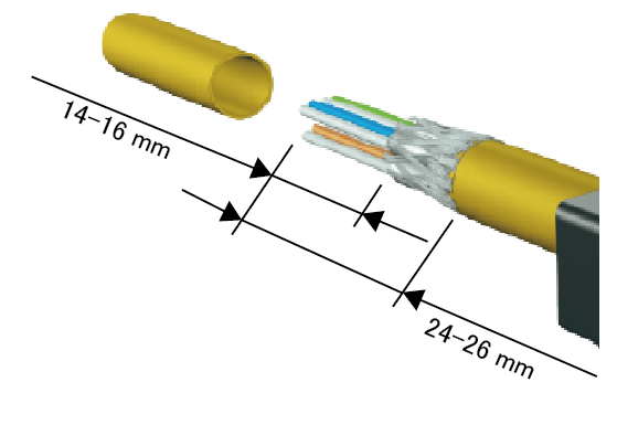 ケーブル外被をケーブル先端から24‐26mmで剥ぎます。