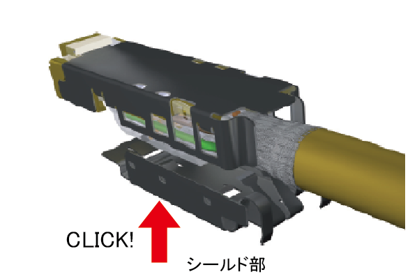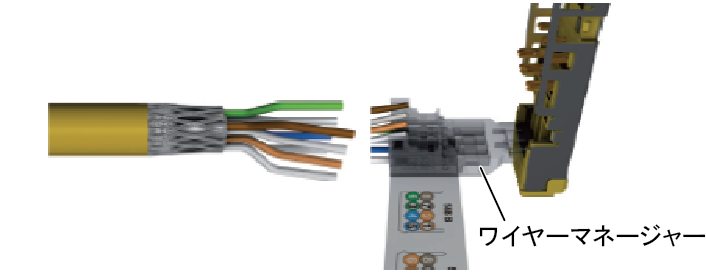 ワイヤーマネージャーを押さえ、RJ45コネクタ本体に完全にロックされるまで倒します。