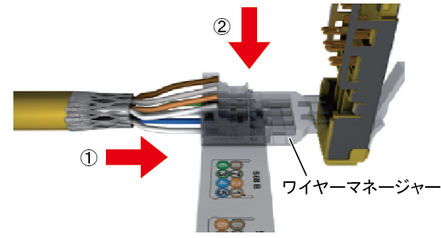 ケーブル線をワイヤーマネージャーの同じ色に挿入します。