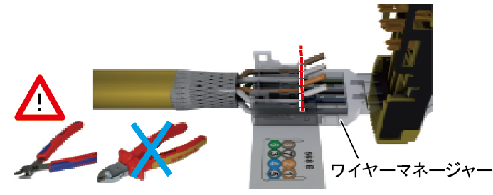 ケーブルのカット寸法およびシールドの長さが規定通りになっているか再度確認をしてください。