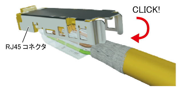 - RJ45コネクタをデータモジュール内に挿入しロックします。