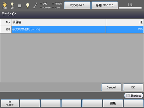 手先制限速度(手動動作時の最大速度)の設定を行います。この機能はVer.2.5.*から有効です。