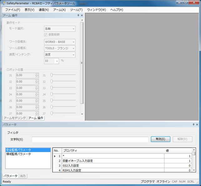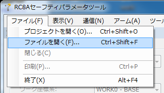 コントローラからWINCAPSIIIを使ってセーフティパラメータをPCに取込み、RC8Aセーフティパラメータツールで参照することができます。