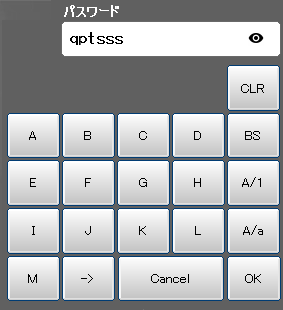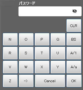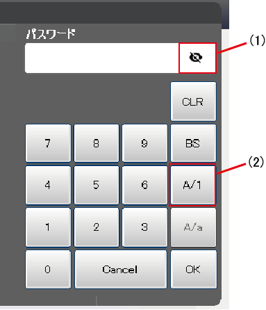 ユーザレベル変更時のログインパスワード入力には、専用の入力キーが表示されます。