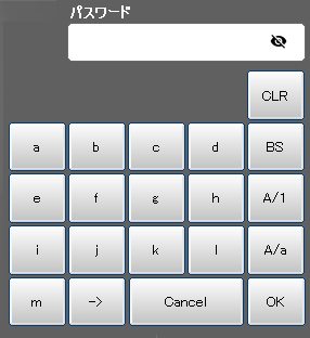 ログインパスワード入力時は、正しいパスワードを入力し[OK] ボタンを押すと、ログインレベルが変更されます。ログインパスワード変更時は、パスワードを入力して[OK] ボタンを押すと、値が該当のパスワード欄に入力されます。