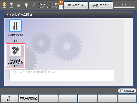 操作経路 : [F6 設定]-[F10 デュアルアーム] |