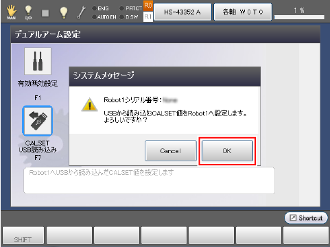 上図のウィンドウにて、[F7 CALSET USB読み込み]を押します。