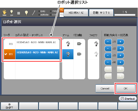 なお、ロボット選択リストのR0とR1の意味は下記の通りです。
