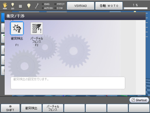 操作経路:[F2 アーム] - [F6 補助機能] - [F2 衝突/干渉]