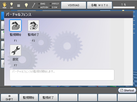 操作経路:[F2 アーム] - [F6 補助機能] - [F2 衝突/干渉] - [F2 バーチャルフェンス]