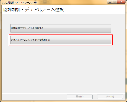 "デュアルアームプロジェクトを使用する”を選択します。