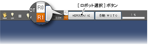 [ロボット選択]ボタンの左にあるアイコンの"R1"が、オレンジ色にマーキングされたことを確認してください(下図参照)。