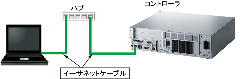 パソコンとロボットコントローラの接続には、下記の方法があります。