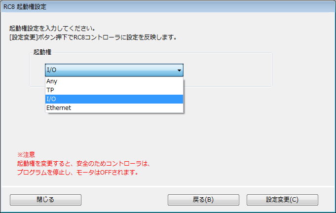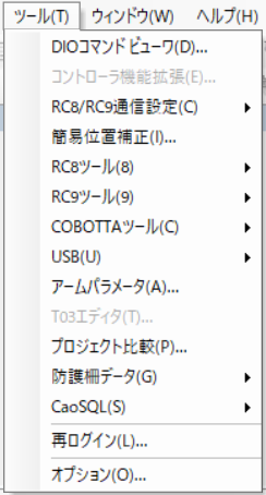 DENSOロボットのオプション機能をWINCAPSIIIから設定します。この機能は、オンライン(モニタ)モード中のみ有効になります。