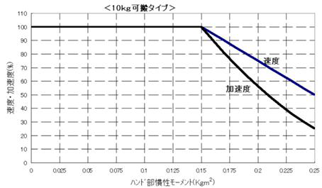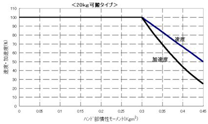 - T軸回り慣性モーメントが0.17kgm2の場合:速度90%、加速度81%以下で使用します。