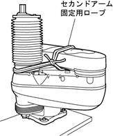 ロボット本体を取り外すときは、セカンドアームが回転しないように、ロープで固定する処置を行なってください。