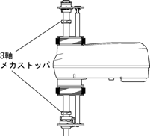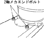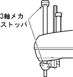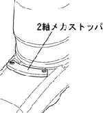 下図に示す1軸・2軸のメカエンドボルトおよび3軸メカストッパは、取外したり、配線ステー等の取付け用に使用しないでください。