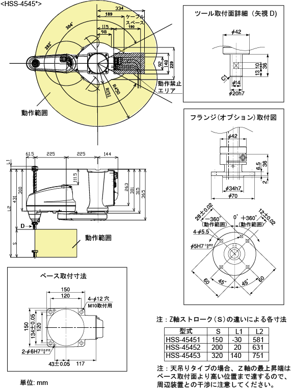 HSS-4545*:アーム長450mm 天吊り 標準タイプ