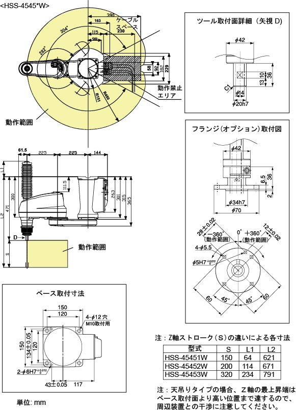 HSS-4545*W:アーム長450mm 天吊り 防塵防滴タイプ