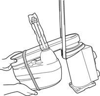 ロボット本体を取外すときは、セカンドアームが回転しないように、ロープで固定する処置を行なってください。
