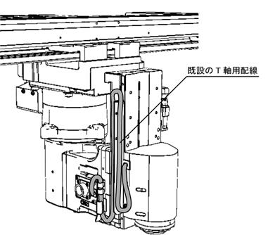 既存のT軸用配線にハンド制御用配線やハンド制御用配管などを一緒に固定しないでください。T軸用の配線を断線させる恐れがあります。