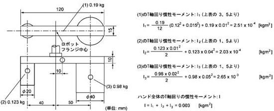 ハンドのT軸回り慣性モーメント計算例
