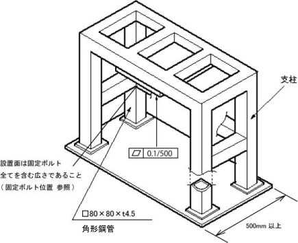 | 設置用架台の剛性 | 鉄鋼材料を使用すること(図を参照) |